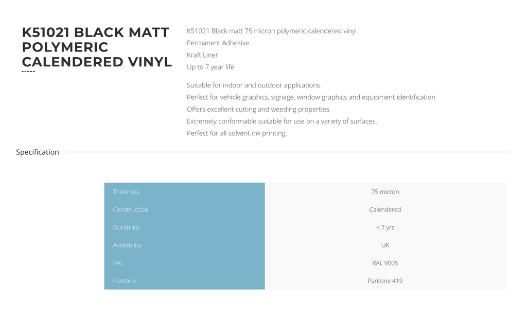 Beskrivning av KPMF K51021 Matt Black Skärvinyl 122cm