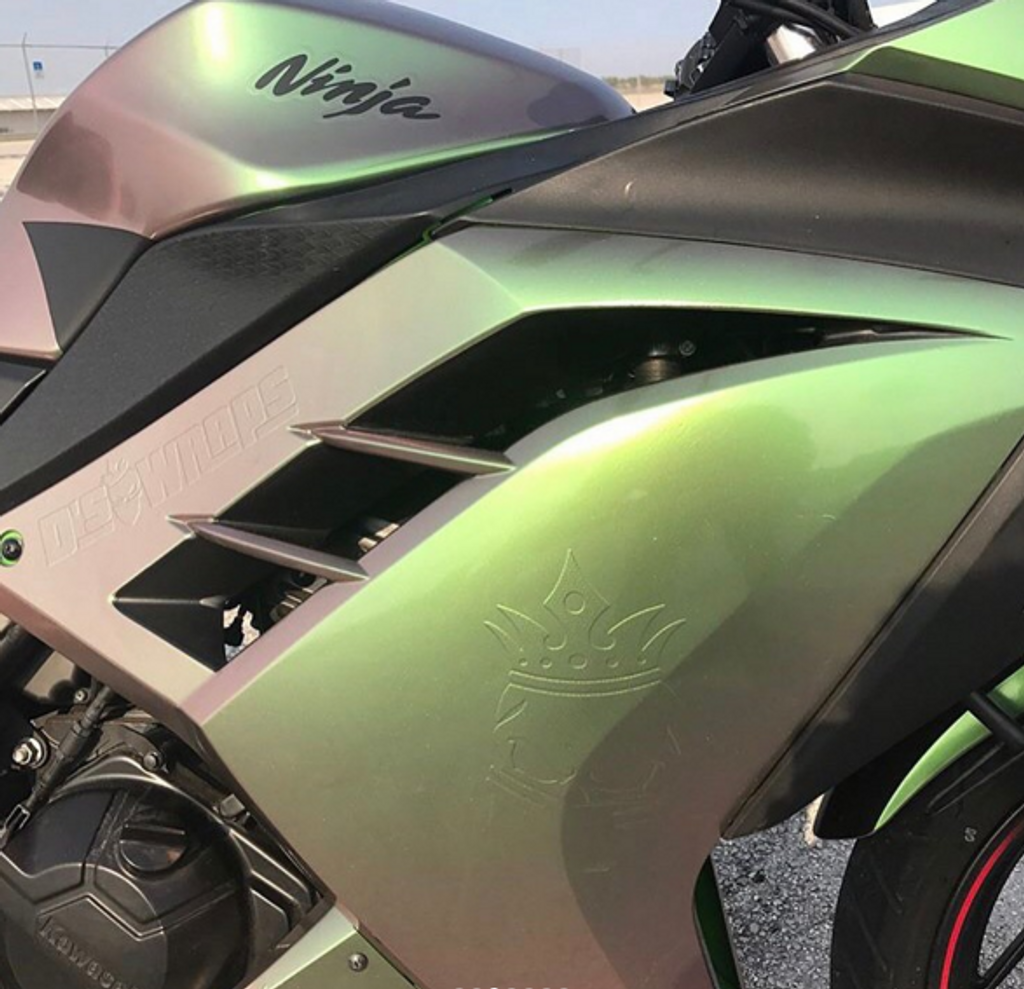- Blank avocado metallic proffsvinyl från ORACAL, Premium Shift Effect Cast