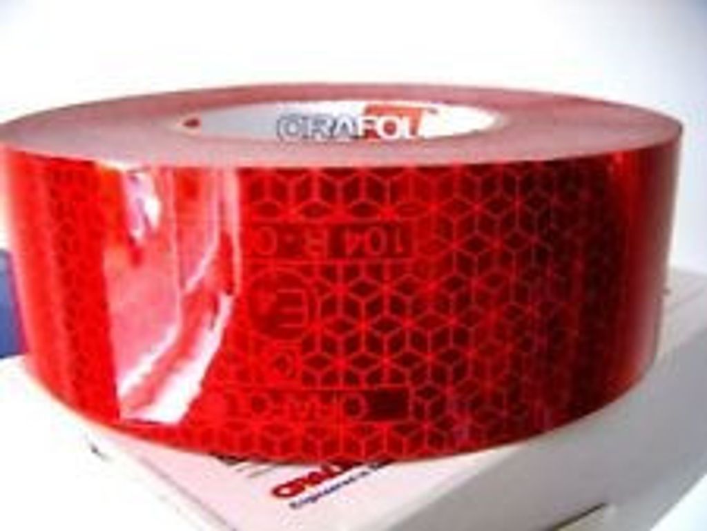 Röd reflextejp för säkerhetsmarkering av fordon. Monteras på kapell, flexibel tejp som följer kapellets / släpets rörelser.